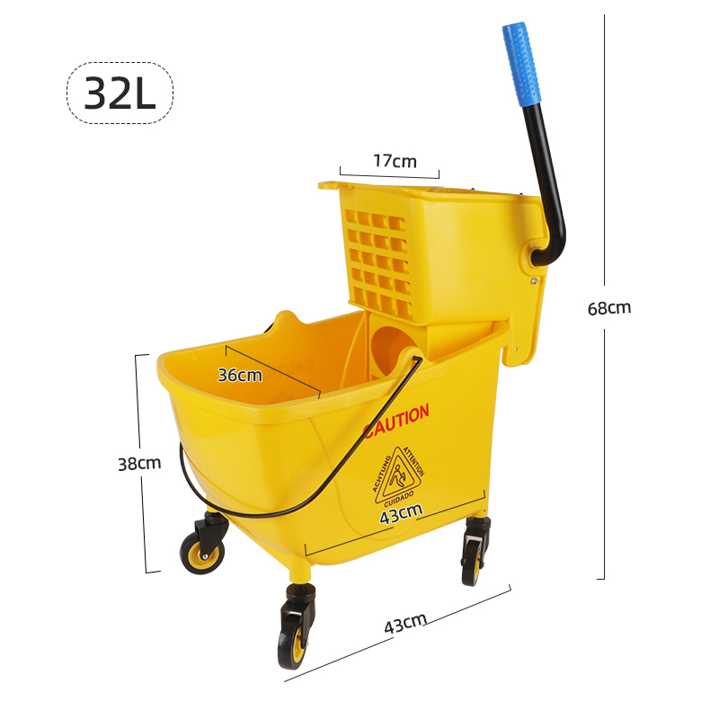 MSJ 20/24/32L Plastic Mop Bucket Trolley with Wringer Water-Squeeze Drainable Mop Wringer Bucket