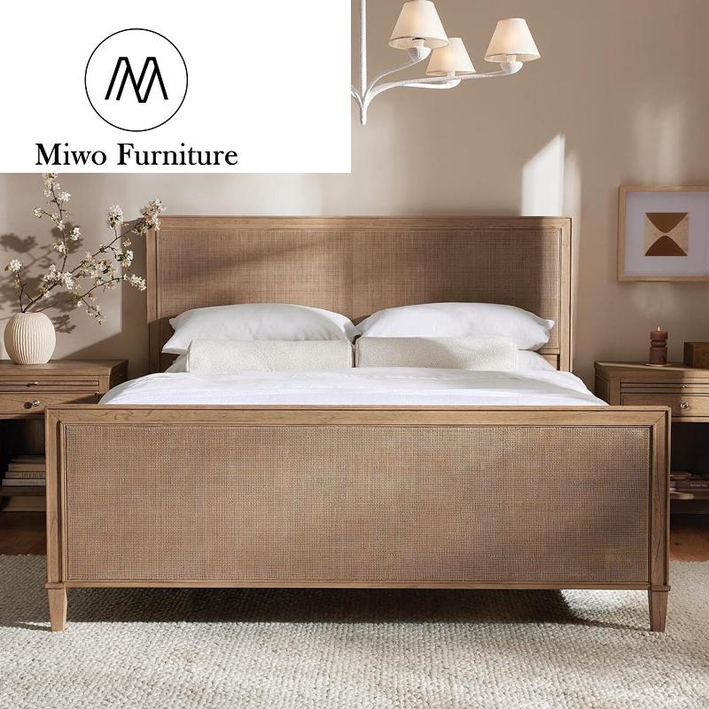 Contemporary Bedroom Furniture Modern Simple Design Hotel Resort Apartment Household Wooden With Rattan Decor Double Black Beds
