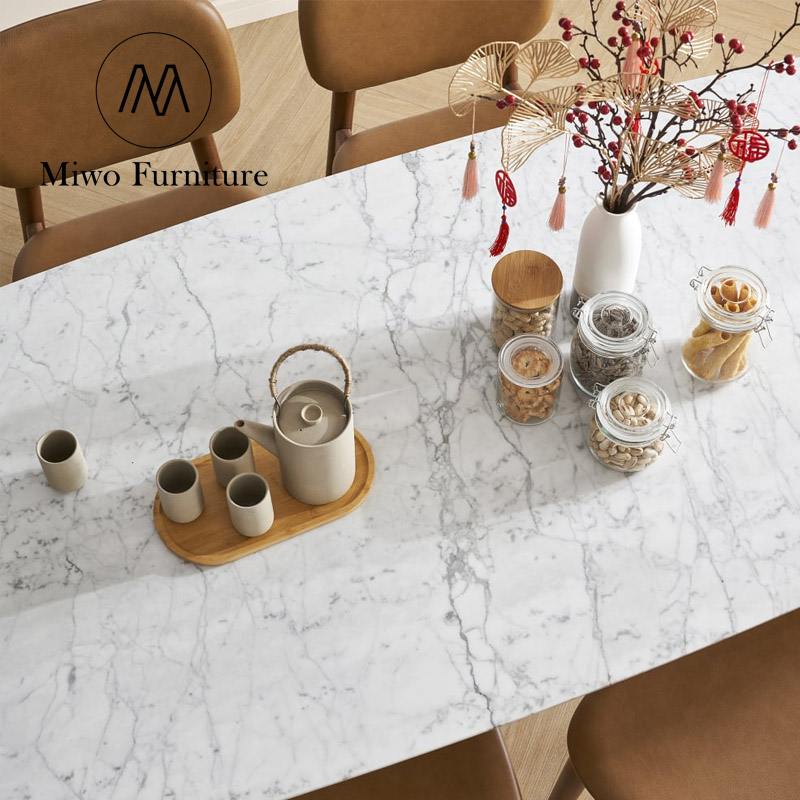 Household Modern Dining Room Walnut Color Rectangle Dining Table Natural Marble Solid Wood Suitable for 6 8 Seat Multiple People
