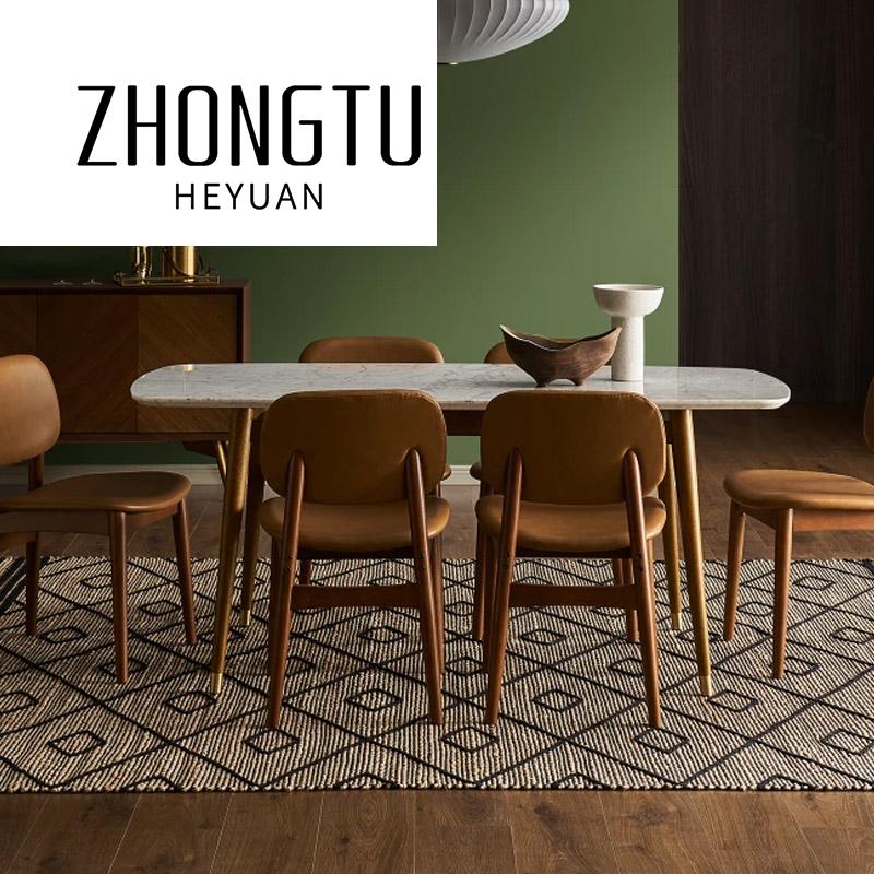 Household Modern Dining Room Walnut Color Rectangle Dining Table Natural Marble Solid Wood Suitable for 6 8 Seat Multiple People